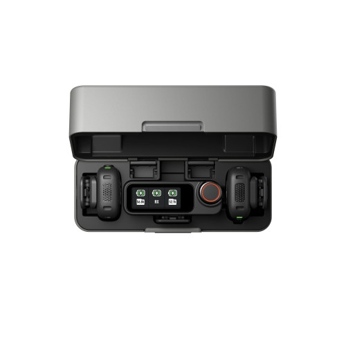 | Thời lượng pin cao & hộp sạc (Charging Case) | TX (bộ phát) và RX (bộ thu) có thể hoạt động lâu dài, khi kết hợp với hộp sạc giúp tổng thời gian sử dụng rất lớn — phù hợp cho cả ngày quay. |