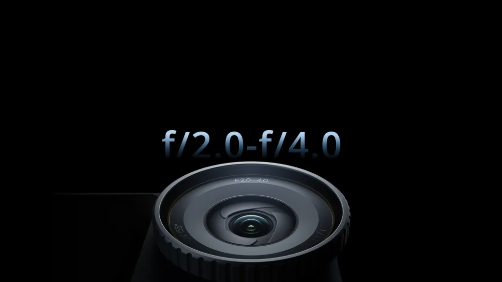 Khẩu độ biến thiên f/2.0 – f/4.0, cho phép kiểm soát ánh sáng linh hoạt, lần đầu xuất hiện trên dòng camera hành động.