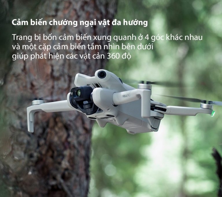 DJI Mini 4 Pro là dòng đầu tiên trong chuỗi các dòng sản phẩm mini của DJI sở hữu khả năng cảm biến vật cản đa hướng công nghệ APAS tiên tiến. Với bốn cảm biến tầm nhìn góc rộng và một cặp cảm biến tầm nhìn xuống, drone có khả năng phát hiện chướng ngại vật từ tất cả các góc độ.