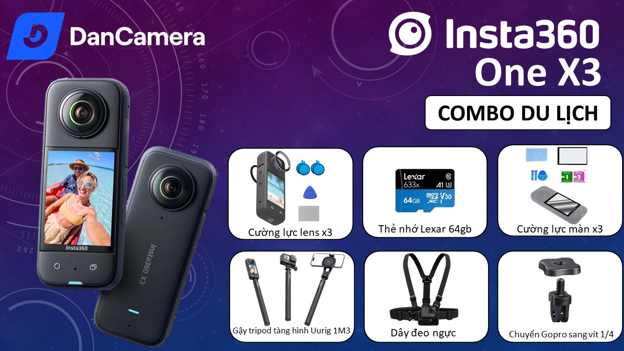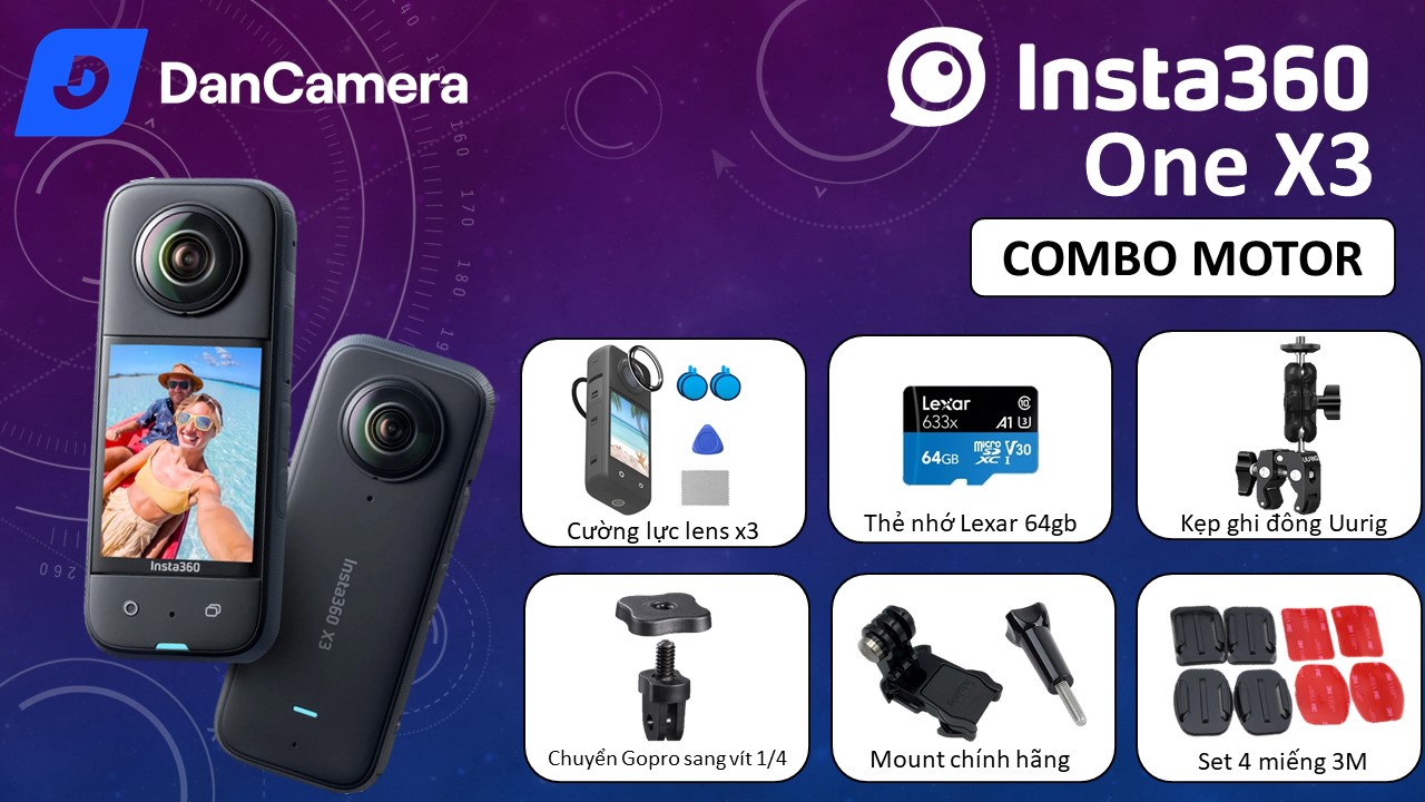Insta360 X3 - Mẫu camera hành động 360 mới nhất của nhà Insta360, phiên bản nâng cấp hơn của ONE X2, sở hữu màn hình cảm ứng lớn hơn 2.29 inch, thời lượng pin dài hơn 1800mAh, cảm biến khủng ½ inch, hệ thống chống rung FlowState, tích hợp 4 micro, cùng nhiều tính năng khác, phù hợp để bắt trọn mọi khoảnh khắc hành động thể thao, chuyển động nhanh của người dùng.