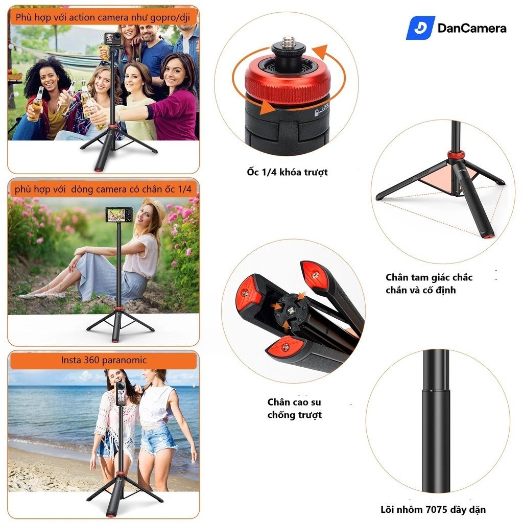 Gậy chân đứng đa năng: Rất tiện dụng cho việc cầm sefile, hoặc quay toàn cảnh, làm vlog... Thêm một chân đứng bên dưới để bạn quay được cảnh timelapse toàn cảnh như bình minh, hoàng hôn hoặc chỉ đơn giản để chụp/quay nhiều người.