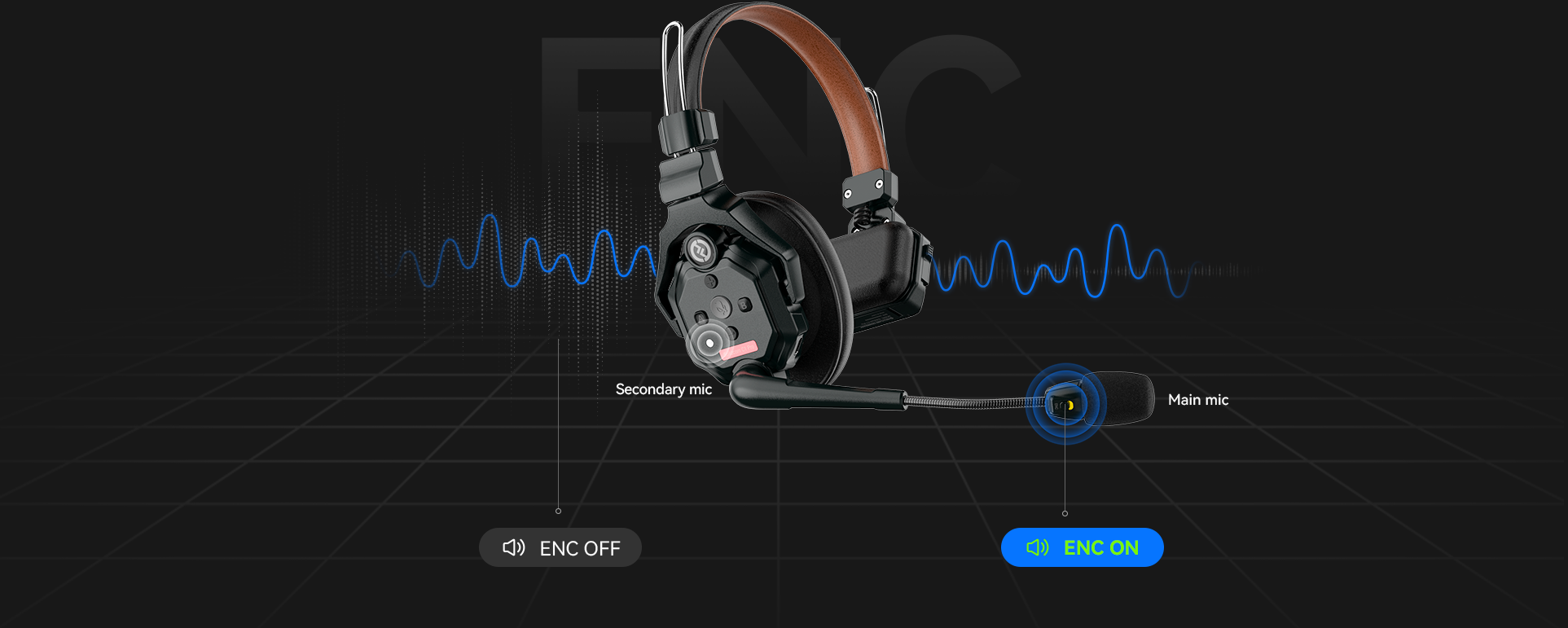Solidcom C1 Pro tự hào có công nghệ ENC mic kép tuyệt vời mang lại âm thanh rõ ràng thu được từ những môi trường ồn ào đầy thách thức. Mic chính định hướng của nó tập trung chính xác vào dải giọng nói của người nói, đồng thời, mic phụ đa hướng thu thập tiếng ồn môi trường từ các hướng khác nhau làm mẫu tiếng ồn. Tín hiệu âm thanh được xử lý bằng thuật toán ENC tiên tiến, loại bỏ tiếng ồn môi trường một cách hiệu quả và mang lại chất lượng âm thanh trong trẻo.