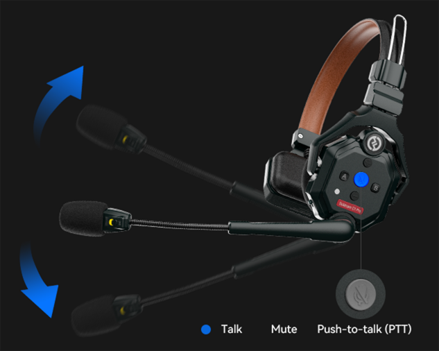 1. Để chuyển giữa chế độ TALK và MUTE, chỉ cần nhấn nút TALK/MUTE. Bạn cũng có thể chuyển đổi giữa hai chế độ bằng cách xoay cần mic lên hoặc xuống.